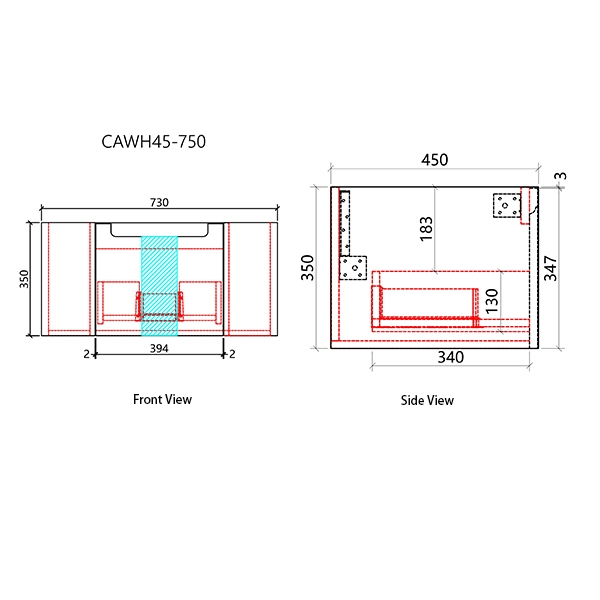 730 x 450 x 350mm 1 Draws