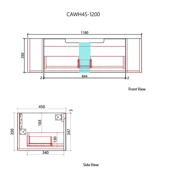 1180 x 450 x 350mm 1 Draws